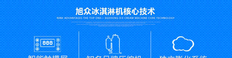 BQL-928T臺(tái)式冰淇淋機(jī),1.選用國(guó)際牌壓縮機(jī),輔以旭眾精湛工藝,大大縮短冰淇淋成型時(shí)間,高效節(jié)能;2.全新液晶智能觸控面板,簡(jiǎn)單明了,多功能易操作;3.全新升級(jí)專業(yè)膨化泵,膨化率高,產(chǎn)量增加30%;4.一鍵清洗功能,省時(shí)方便;5.主要部件采用不銹鋼材質(zhì),時(shí)尚美觀,持久耐用;6.先進(jìn)的機(jī)械攪拌系統(tǒng),機(jī)器運(yùn)行穩(wěn)定可靠,低噪音,產(chǎn)品口感爽滑細(xì)嫩。