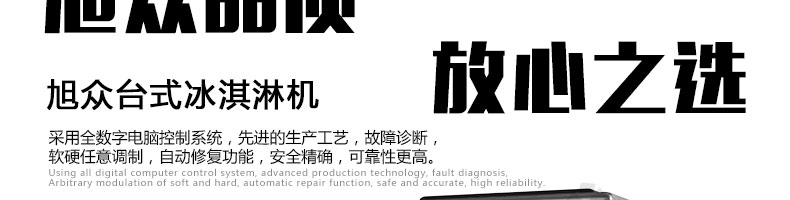 BQL-116臺式冰淇淋機,●選用國際名牌成熟制冷配套件和高效壓縮機,融合旭眾精湛工藝輔以嚴格的質(zhì)量控制流程,使產(chǎn)品整體性能及品質(zhì)得以全面提升?!癫捎萌珨?shù)字電腦控制系統(tǒng),選用名牌優(yōu)質(zhì)電器元件,先進的生產(chǎn)工藝,故障診斷,軟硬任意調(diào)制,自動修復(fù)功能,安全精確,可靠性更高。●專業(yè)成熟制冷系統(tǒng)設(shè)計,選用世界名牌大功率專用壓縮機,大大縮短冰淇淋成型時間,相同時間內(nèi)冰淇淋產(chǎn)量大幅度增加,使您生意火爆時依然得心應(yīng)手,為您創(chuàng)造財富?!癜踩椒€(wěn)的機械攪拌系統(tǒng),噪音更低、振動更小,使整機運行性能達到國際先進水平?!翊_保進料溫度在0°C~35°C;環(huán)境溫度5°C~40°C勻可正常使用。