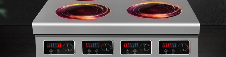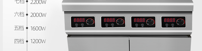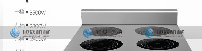 四頭柜式電磁爐,10檔調(diào)節(jié),滿足各種烹飪。3500W火力十足,輕松選擇合適火力。同時工作互不干擾單獨磁爐控制面板,設(shè)置不同大小檔數(shù),同時工作,互不干擾。