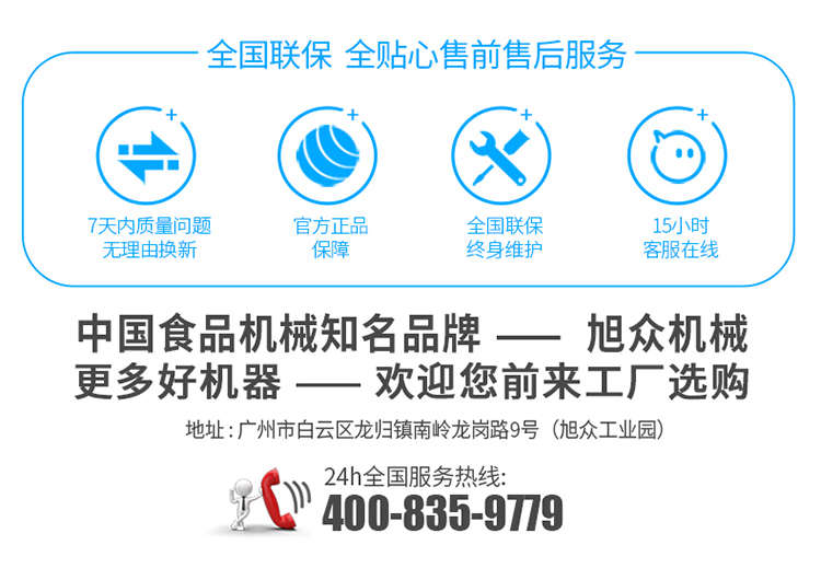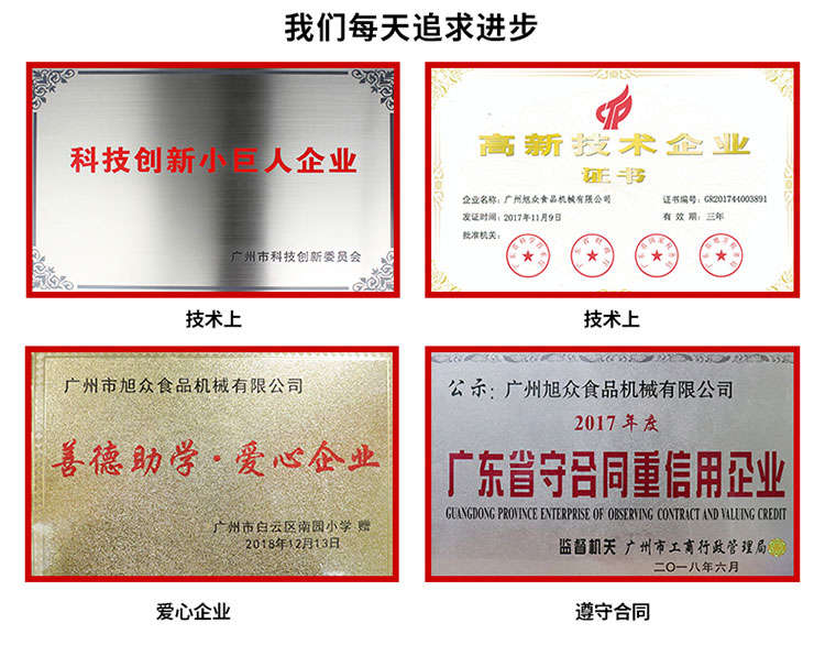 廣州旭眾食品機(jī)械有限公司是一家集科研開發(fā),生產(chǎn)設(shè)計,營銷服務(wù)為一體的現(xiàn)代化生產(chǎn)企業(yè)?,F(xiàn)代化生產(chǎn)車間,精湛制造技術(shù),所產(chǎn)機(jī)械歷經(jīng)市場重重考驗,不斷贏得海內(nèi)外客戶的贊譽(yù)。
