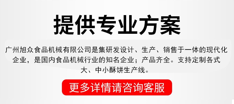 廣州旭眾食品機械有限公司是一家集科研開發(fā),生產(chǎn)設計,營銷服務為一體的現(xiàn)代化生產(chǎn)企業(yè)。現(xiàn)代化生產(chǎn)車間,精湛制造技術(shù),所產(chǎn)機械歷經(jīng)市場重重考驗,不斷贏得海內(nèi)外客戶的贊譽。