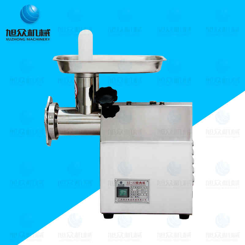 SZ-22 電動絞肉機,電動絞肉機的??字睆綖?、8mm,本機優(yōu)點具有電耐用、方便快捷、結(jié)構(gòu)緊湊、外形美觀、操作方便、效率高、耗電少、清潔保養(yǎng)容易、安全衛(wèi)生等優(yōu)點。采用全封閉齒輪傳動,結(jié)構(gòu)緊湊,運轉(zhuǎn)平穩(wěn),工作可靠,且維修方便;絞肉機頭及接觸食品的零部件都采用不銹鋼制造,安全無污染;機殼線條流暢,沒有可污的縫隙及無傷害操作者的銳邊,易于清潔。