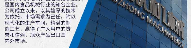 廣州旭眾食品機(jī)械有限公司是一家集科研開發(fā),生產(chǎn)設(shè)計(jì),營銷服務(wù)為一體的現(xiàn)代化生產(chǎn)企業(yè)?,F(xiàn)代化生產(chǎn)車間,精湛制造技術(shù),所產(chǎn)機(jī)械歷經(jīng)市場重重考驗(yàn),不斷贏得海內(nèi)外客戶的贊譽(yù)。