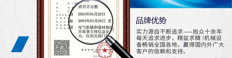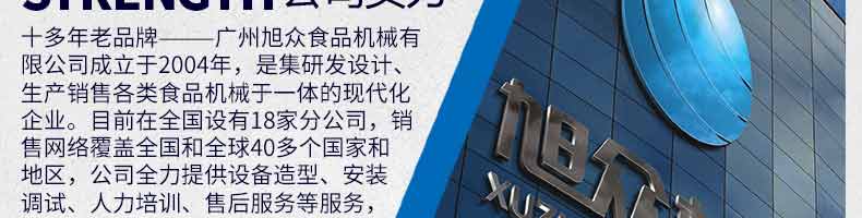 廣州旭眾食品機(jī)械有限公司是一家集科研開(kāi)發(fā),生產(chǎn)設(shè)計(jì),營(yíng)銷(xiāo)服務(wù)為一體的現(xiàn)代化生產(chǎn)企業(yè)。現(xiàn)代化生產(chǎn)車(chē)間,精湛制造技術(shù),所產(chǎn)機(jī)械歷經(jīng)市場(chǎng)重重考驗(yàn),不斷贏得海內(nèi)外客戶(hù)的贊譽(yù)。