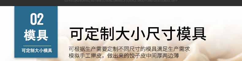 名稱801餃子皮機 電源220V 功率0.25KW 產(chǎn)量 尺寸650*380*750MM 重量 規(guī)格 其他
