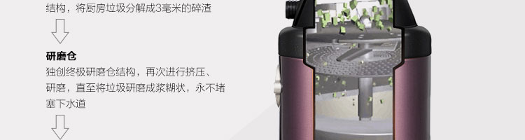 DCLQ38-廚房垃圾處理器,該機(jī)擁有獨(dú)特的粉碎功能,使所有垃圾研磨吸毒真正低于3毫米,用戶不用為管道堵塞而煩惱,粉碎后粗、細(xì)兩種垃圾通過濾孔自動(dòng)分離,成漿狀的細(xì)垃圾隨水流流入管道,粗的垃圾會(huì)稍停留在研磨倉繼續(xù)粉碎,形成粉末狀后,再隨水流流入管道,客戶可以放心使用。
