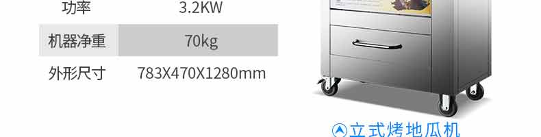 名稱臺式地瓜機 電源220V 功率2.0KW,3.2KW 產(chǎn)量 尺寸620*500*680mm,783*470*1280mm 重量41KG,70KG 規(guī)格 其他