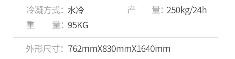 名稱500制冰機 電源220v 功率1kw 產(chǎn)量250kg/24h 尺寸762*830*1640mm 重量95kg 規(guī)格 其他