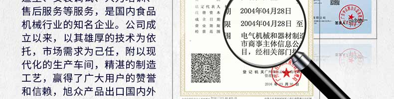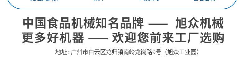 廣州旭眾食品機械有限公司是一家集科研開發(fā),生產(chǎn)設計,營銷服務為一體的現(xiàn)代化生產(chǎn)企業(yè)?,F(xiàn)代化生產(chǎn)車間,精湛制造技術,所產(chǎn)機械歷經(jīng)市場重重考驗,不斷贏得海內(nèi)外客戶的贊譽。