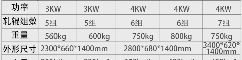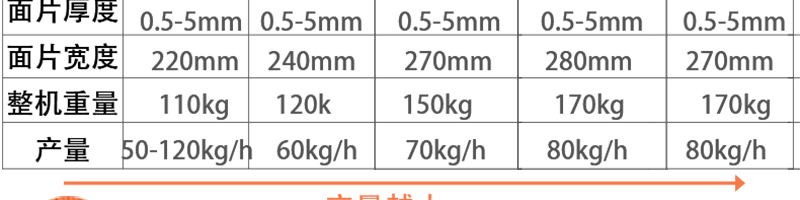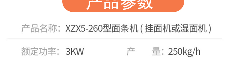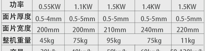 名稱(chēng)MT260-5多功能面條機(jī) 電源 功率3kw 產(chǎn)量200kg/h 尺寸1800*620*1400mm 重量560kg 規(guī)格 其他