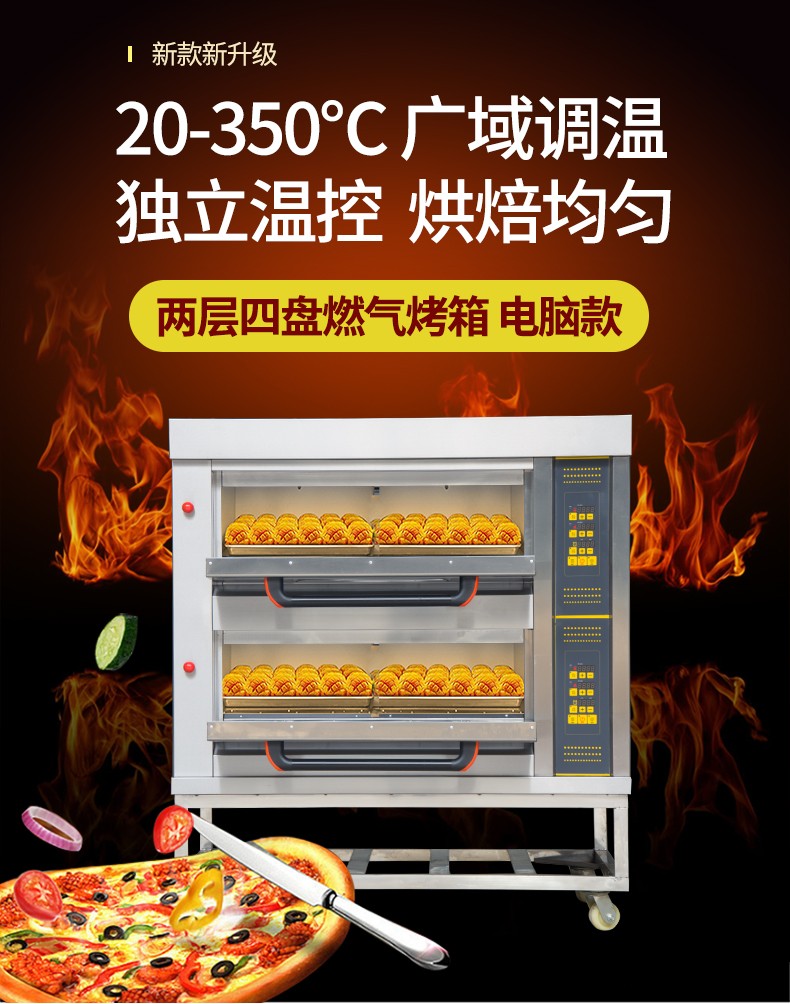 名稱兩層四盤電腦版燃氣烤箱 電源220V 功率0.2KW 產(chǎn)量 尺寸1340*908*1507mm 重量240KG 規(guī)格兩層四盤 其他