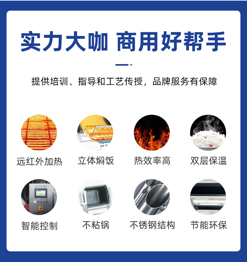 機(jī)械手全自動米飯生產(chǎn)線,實(shí)力大咖 商用好幫手,提供培訓(xùn)、指導(dǎo)和工藝傳授,品牌服務(wù)有保障。遠(yuǎn)紅外加熱、智能控制、立體燜飯、不粘鍋、熱效率高、不銹鋼結(jié)構(gòu)、雙層保溫、節(jié)能環(huán)保。