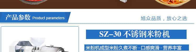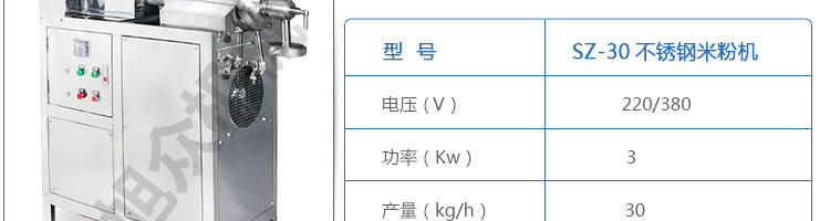 名稱SZ-30不銹鋼米粉機 電源220/380V 功率3kw 產(chǎn)量30kg/h 尺寸950*400*1270mm 重量80kg 規(guī)格 其他