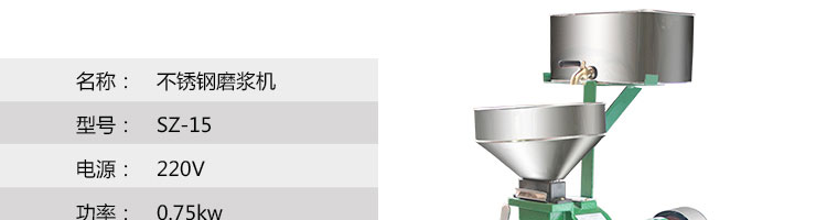 名稱SZ-15不銹鋼自動磨漿機(jī) 電源220v 功率0.75kw 產(chǎn)量1400(轉(zhuǎn)/分) 尺寸465*250*745mm 重量45kg 規(guī)格 其他