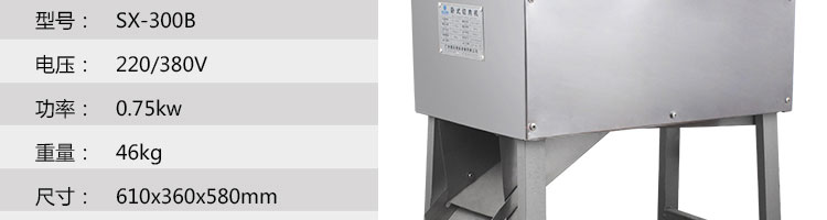 名稱SX300B 臥式切肉機 電源220/380V 功率0.75kw 產量 尺寸610*360*580mm 重量46kg 規(guī)格 其他