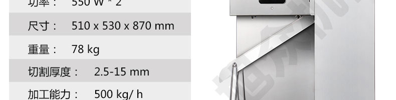 名稱XZ-QSJ-A530切絲機(jī) 電源 功率 產(chǎn)量 尺寸 重量 規(guī)格 其他