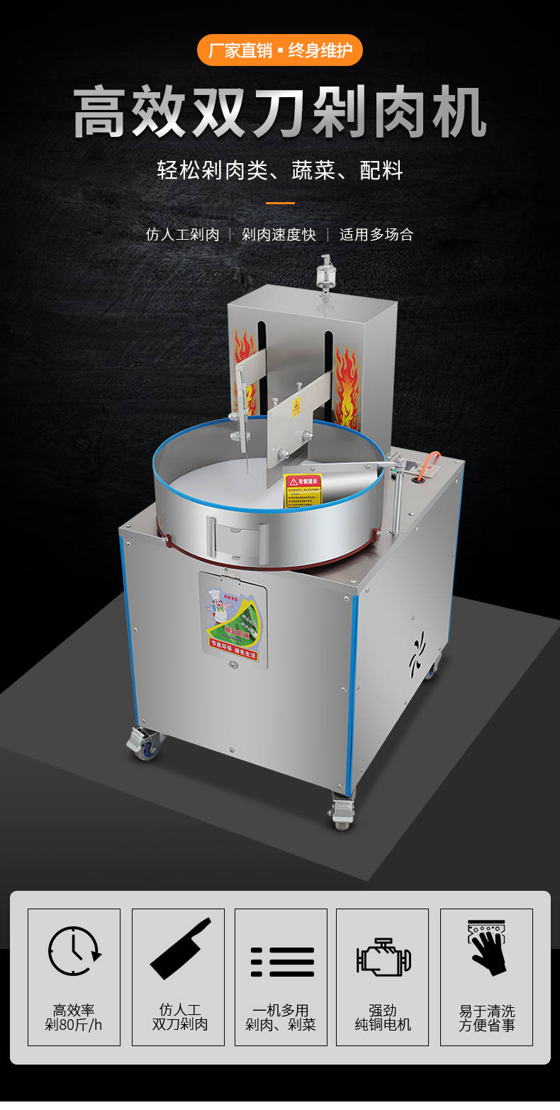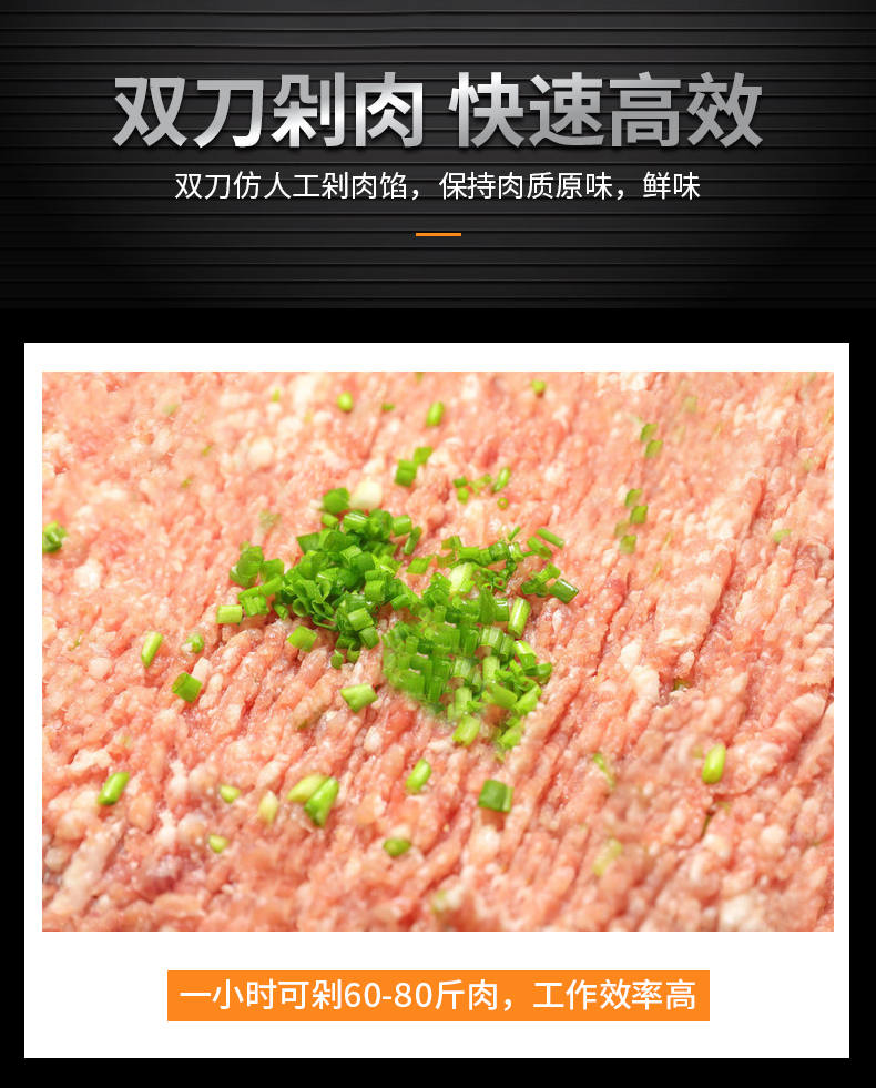 XZ-FL30剁肉機,高效雙萬剁肉機,輕松剁肉類、蔬菜、配料。仿人工剁肉、剁肉速度快、適用多場合。輕松搞定各種食材旭眾雙刀剁肉機,讓你告別人工,高效剁各種食材。不銹鋼穩(wěn)定機身加厚不銹鋼板材,堅固耐用,不易生銹,延長使用壽命
