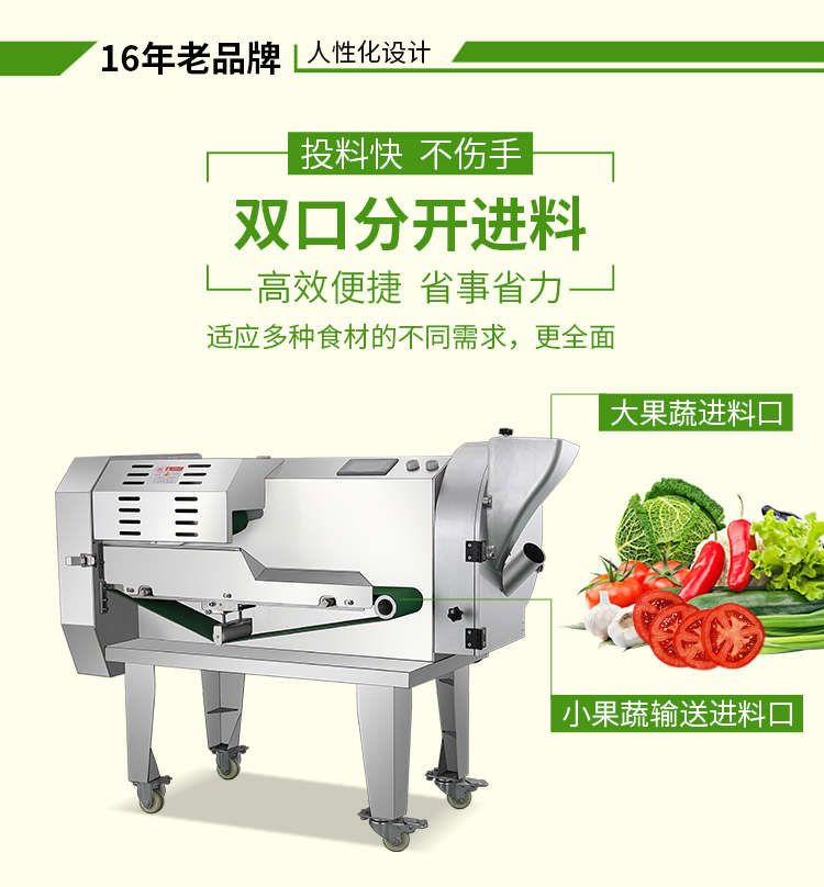 XZ-690A型多功能切菜機,工作效率高,幫你省人工費。1小時可切600kg-1600kg/h,1臺機器等于多名廚師同時為您工作。一機多用,可切瓜果、蔬菜、藥材,刀片可進行更換,設(shè)計周到,結(jié)構(gòu)合理,簡單輕松應對。