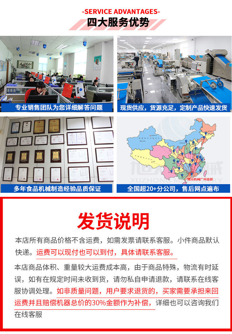 廣州旭眾食品機械有限公司是一家集科研開發(fā),生產(chǎn)設(shè)計,營銷服務(wù)為一體的現(xiàn)代化生產(chǎn)企業(yè)。現(xiàn)代化生產(chǎn)車間,精湛制造技術(shù),所產(chǎn)機械歷經(jīng)市場重重考驗,不斷贏得海內(nèi)外客戶的贊譽。