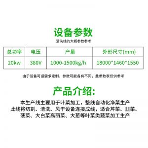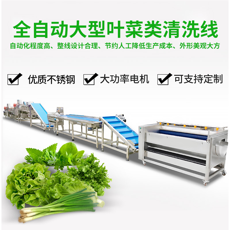 全自動大型葉菜清洗線,自動化程度高、整線設(shè)計合理、節(jié)約人工降低生產(chǎn)成本、外形美觀大方。主要用于葉菜加工,整線自動化凈菜生產(chǎn)此線將切割、清洗、風干設(shè)備連接成線,適合芹菜、韭菜菠菜、大白菜高麗菜、大蔥等葉菜類蔬菜加工生產(chǎn)