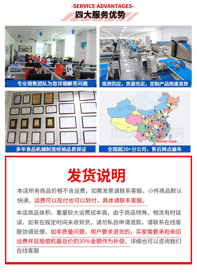 廣州旭眾食品機械有限公司是一家集科研開發(fā),生產(chǎn)設(shè)計,營銷服務(wù)為一體的現(xiàn)代化生產(chǎn)企業(yè)。現(xiàn)代化生產(chǎn)車間,精湛制造技術(shù),所產(chǎn)機械歷經(jīng)市場重重考驗,不斷贏得海內(nèi)外客戶的贊譽。