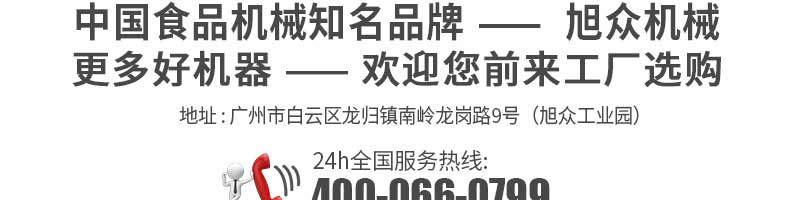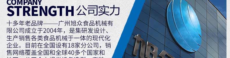 廣州旭眾食品機(jī)械有限公司是一家集科研開發(fā),生產(chǎn)設(shè)計,營銷服務(wù)為一體的現(xiàn)代化生產(chǎn)企業(yè)?,F(xiàn)代化生產(chǎn)車間,精湛制造技術(shù),所產(chǎn)機(jī)械歷經(jīng)市場重重考驗(yàn),不斷贏得海內(nèi)外客戶的贊譽(yù)。