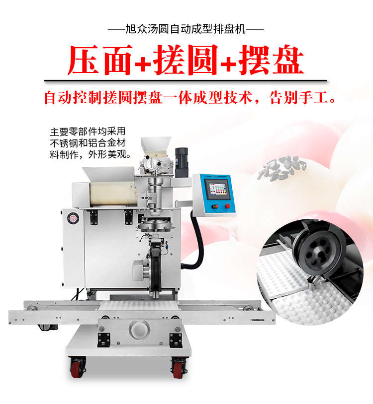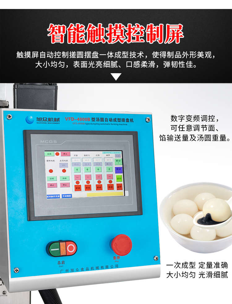 VFD-4000B湯圓機(jī),定量準(zhǔn)確自動(dòng)搓圓排盤成型大小均勻口感柔滑。可制作各式包餡食品,如湯圓、芝麻球、豆沙包、南瓜餅、奶黃包等