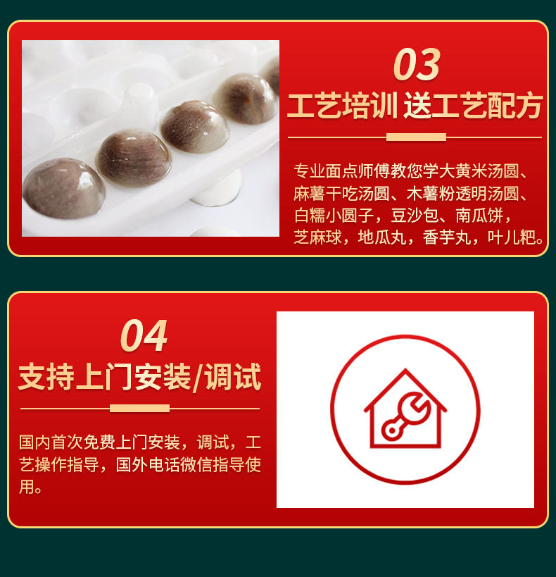4000C湯圓機,多功能湯圓機,運行穩(wěn)定、時產量高、大小可調。制品多樣性生產各種大小規(guī)格不同的有餡湯圓,無餡湯圓、豆沙包、南瓜餅,芝麻球,地瓜丸,香芋丸,葉兒粑,青團,粘豆包等。