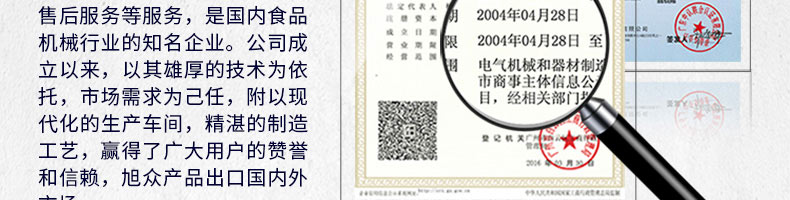 廣州旭眾食品機(jī)械有限公司是一家集科研開(kāi)發(fā),生產(chǎn)設(shè)計(jì),營(yíng)銷服務(wù)為一體的現(xiàn)代化生產(chǎn)企業(yè)?,F(xiàn)代化生產(chǎn)車間,精湛制造技術(shù),所產(chǎn)機(jī)械歷經(jīng)市場(chǎng)重重考驗(yàn),不斷贏得海內(nèi)外客戶的贊譽(yù)。