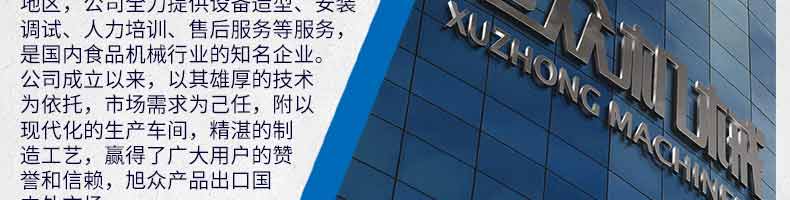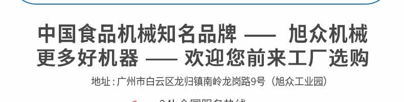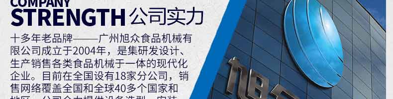 廣州旭眾食品機(jī)械有限公司是一家集科研開發(fā),生產(chǎn)設(shè)計,營銷服務(wù)為一體的現(xiàn)代化生產(chǎn)企業(yè)?,F(xiàn)代化生產(chǎn)車間,精湛制造技術(shù),所產(chǎn)機(jī)械歷經(jīng)市場重重考驗,不斷贏得海內(nèi)外客戶的贊譽(yù)。