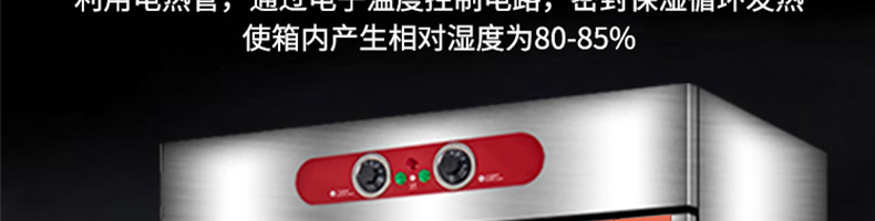 VF系列醒發(fā)箱,熱風(fēng)循環(huán)、恒溫發(fā)酵。熱氣均勻分布,多盤(pán)發(fā)酵制作美味一樣到底。恒溫醒發(fā)箱完美解決利用電熱管,通過(guò)電子溫度控制電路,密封保濕循環(huán)發(fā)熱使箱內(nèi)產(chǎn)生相對(duì)濕度為80-85%