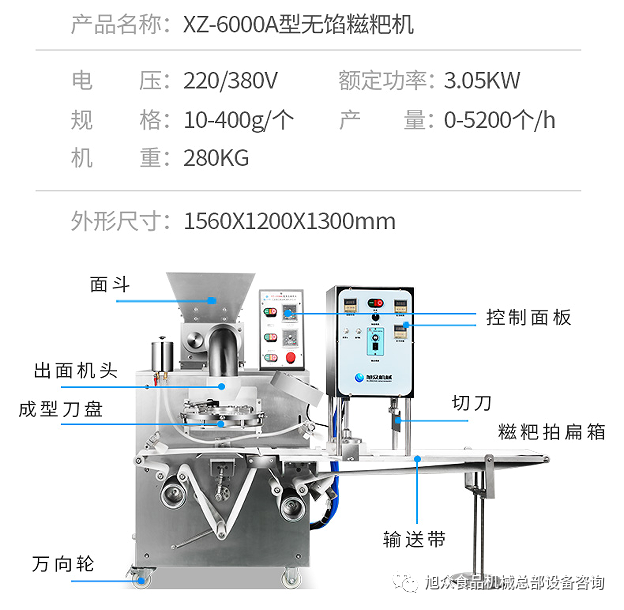 旭眾新款定做糍粑機,是一款生產(chǎn)香甜無餡糍粑的設備;設備入料斗容量大,采用雙絞龍送料、變頻無極調(diào)速。產(chǎn)品大小、出皮厚度調(diào)節(jié)自如、使用方便、精確度高,出皮均勻、暢通、產(chǎn)品一次成型,所出產(chǎn)品外形大小統(tǒng)一,遠比手工制作美觀、便捷。