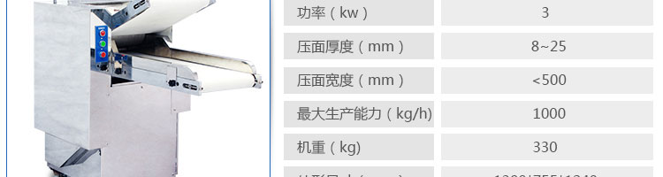 500自動壓面機系列,本機低噪音、高效率,適用于賓館、面包店、糕點廠制作面包、西點、包子,使可反復(fù)壓制和面后的面團、面筋,能得到增強。適應(yīng)各客戶的不同需要。