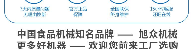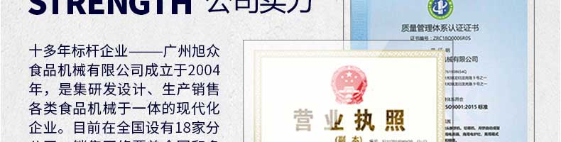 廣州旭眾食品機(jī)械有限公司是一家集科研開發(fā),生產(chǎn)設(shè)計,營銷服務(wù)為一體的現(xiàn)代化生產(chǎn)企業(yè)?,F(xiàn)代化生產(chǎn)車間,精湛制造技術(shù),所產(chǎn)機(jī)械歷經(jīng)市場重重考驗,不斷贏得海內(nèi)外客戶的贊譽(yù)。