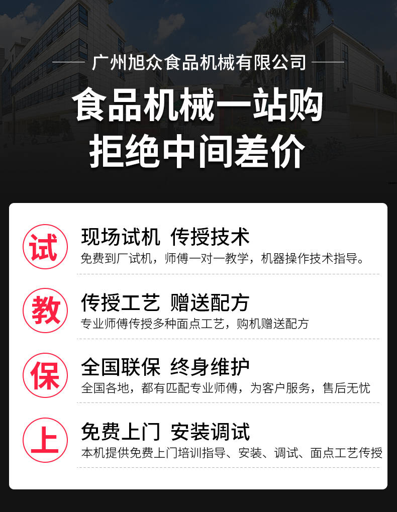 廣州旭眾食品機械有限公司是一家集科研開發(fā),生產(chǎn)設計,營銷服務為一體的現(xiàn)代化生產(chǎn)企業(yè)?,F(xiàn)代化生產(chǎn)車間,精湛制造技術(shù),所產(chǎn)機械歷經(jīng)市場重重考驗,不斷贏得海內(nèi)外客戶的贊譽。