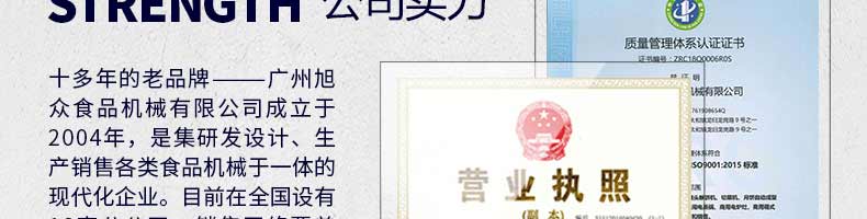 廣州旭眾食品機(jī)械有限公司是一家集科研開發(fā),生產(chǎn)設(shè)計(jì),營銷服務(wù)為一體的現(xiàn)代化生產(chǎn)企業(yè)?,F(xiàn)代化生產(chǎn)車間,精湛制造技術(shù),所產(chǎn)機(jī)械歷經(jīng)市場(chǎng)重重考驗(yàn),不斷贏得海內(nèi)外客戶的贊譽(yù)。