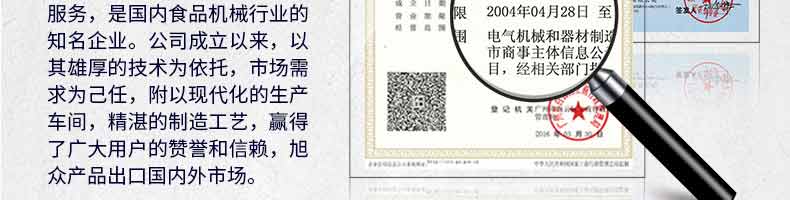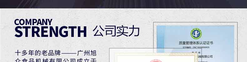 廣州旭眾食品機(jī)械有限公司是一家集科研開發(fā),生產(chǎn)設(shè)計(jì),營銷服務(wù)為一體的現(xiàn)代化生產(chǎn)企業(yè)?,F(xiàn)代化生產(chǎn)車間,精湛制造技術(shù),所產(chǎn)機(jī)械歷經(jīng)市場重重考驗(yàn),不斷贏得海內(nèi)外客戶的贊譽(yù)。